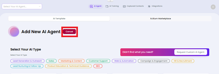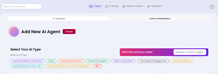 - Select Add New AI Agent to open the template selection page.