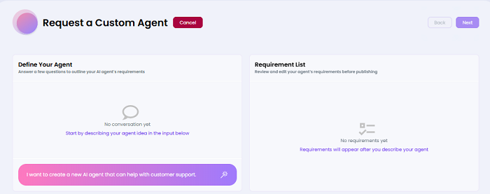 If available templates don’t match your unique requirements, you can request a fully customized AI solution.